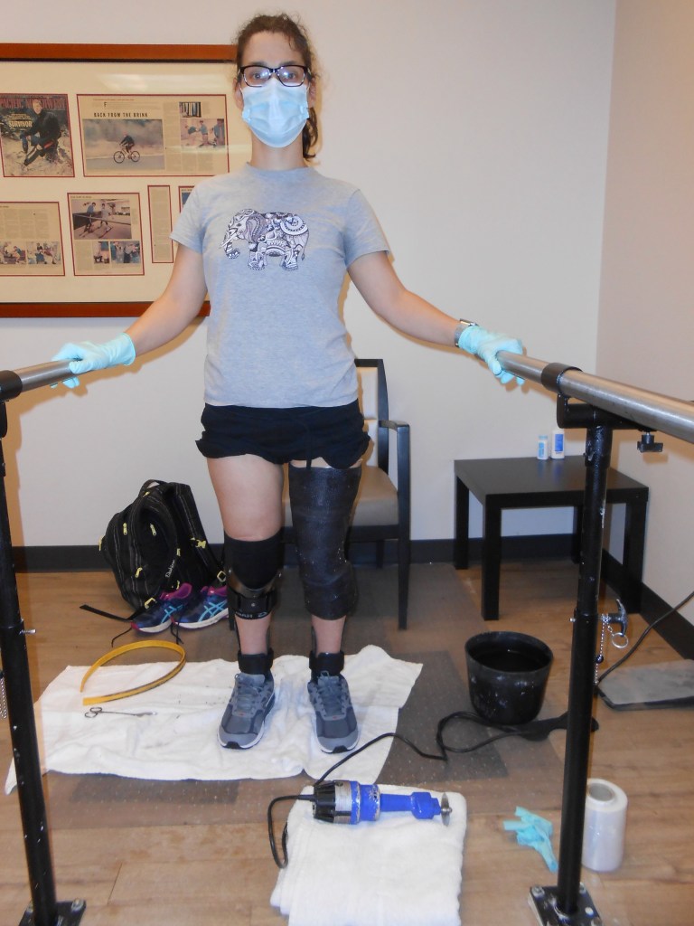 I am supposed to come back early in the morning to get my knee sections. I am nervous because I know that they will add so much more bulk and weight. But I’m also ready because they keep telling me how much progress I will make with knee sections. They should be ready by 8am. I will wait for a text from Ryan to confirm.