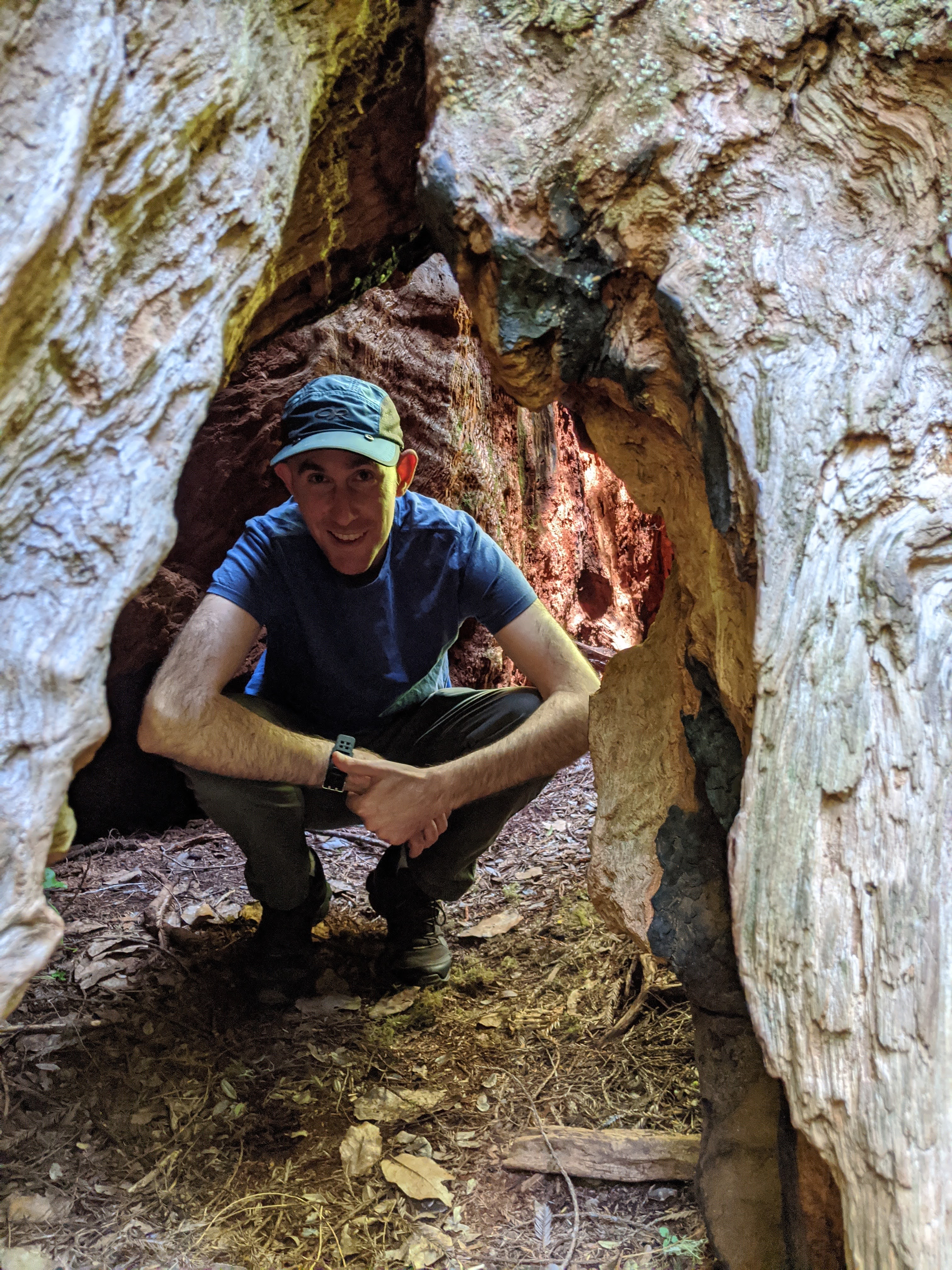 My husband and I were reunited, and he was taking me to the redwoods. We checked into our cabin and ate some dinner. Then it was finally time to show him my Exosyms. I had put them on that morning, about twelve hours earlier, for a few minutes of practice before the long car trip to meet up with my husband. I put on my brace sleeves. Then the right device, and–I couldn’t close the knee cuff! I really squeezed my calf, trying to close the top part of the brace. It simply would not close. Not just a little–there was quite a gap. My mind raced: Okay, I’ve been sitting in the car all day. Too much salt. Not enough water. Do calves really bloat/swell this much? My calves are supposed to shrink now, not get bigger!
